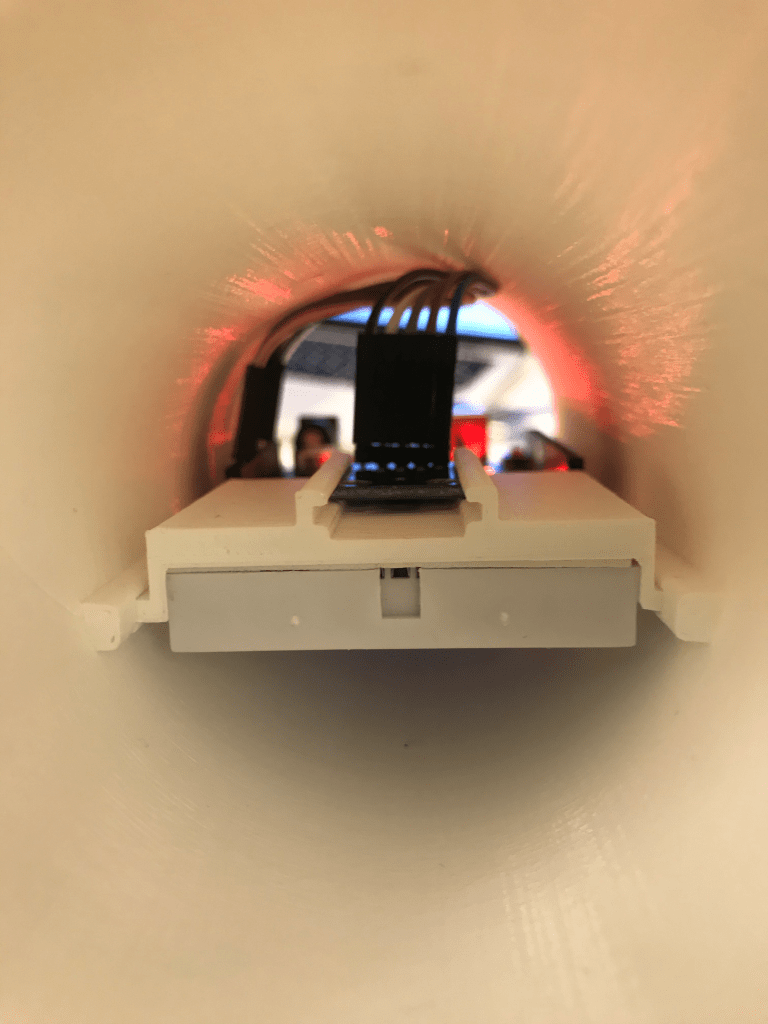 I dag har Lorentz og Åsmund jobbet med akselerometeret. Vi har jobbet med lesing av data samt filtrering av støy. Vi har lagd en veldig enkel prototype av røret. Se bildet nedenfor fra innsiden av røret. Vi prøvde å legge til bluetooth for å lese av data trådløs, men fant ut at det var like lett med en litt lengre ledning. Bluetooth viser seg ustabil uansett.